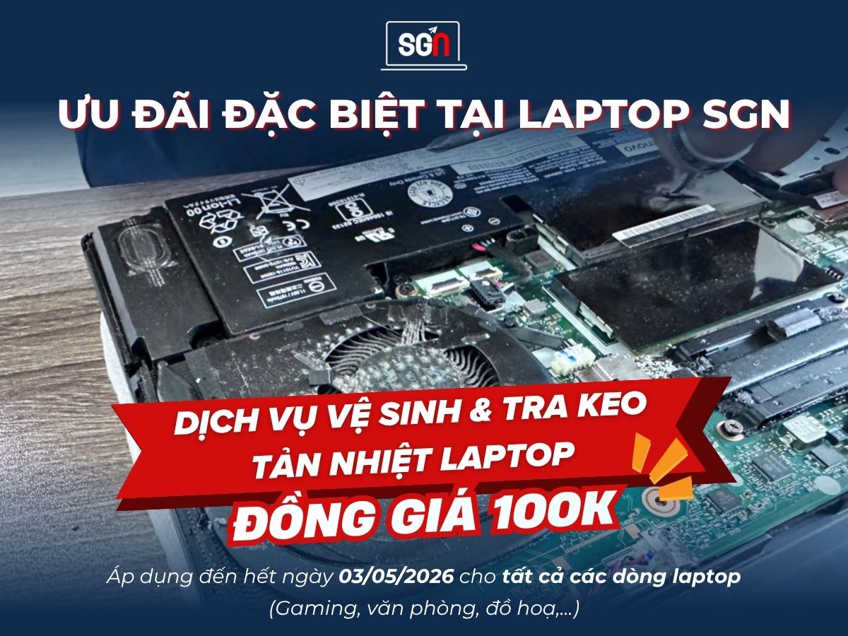 Nếu laptop của bạn đang nóng, chạy chậm hoặc lâu chưa vệ sinh – đừng chần chừ! Nhanh chân ghé ngay Laptop SGN để được vệ sinh & tra keo tản nhiệt chỉ với 100K,