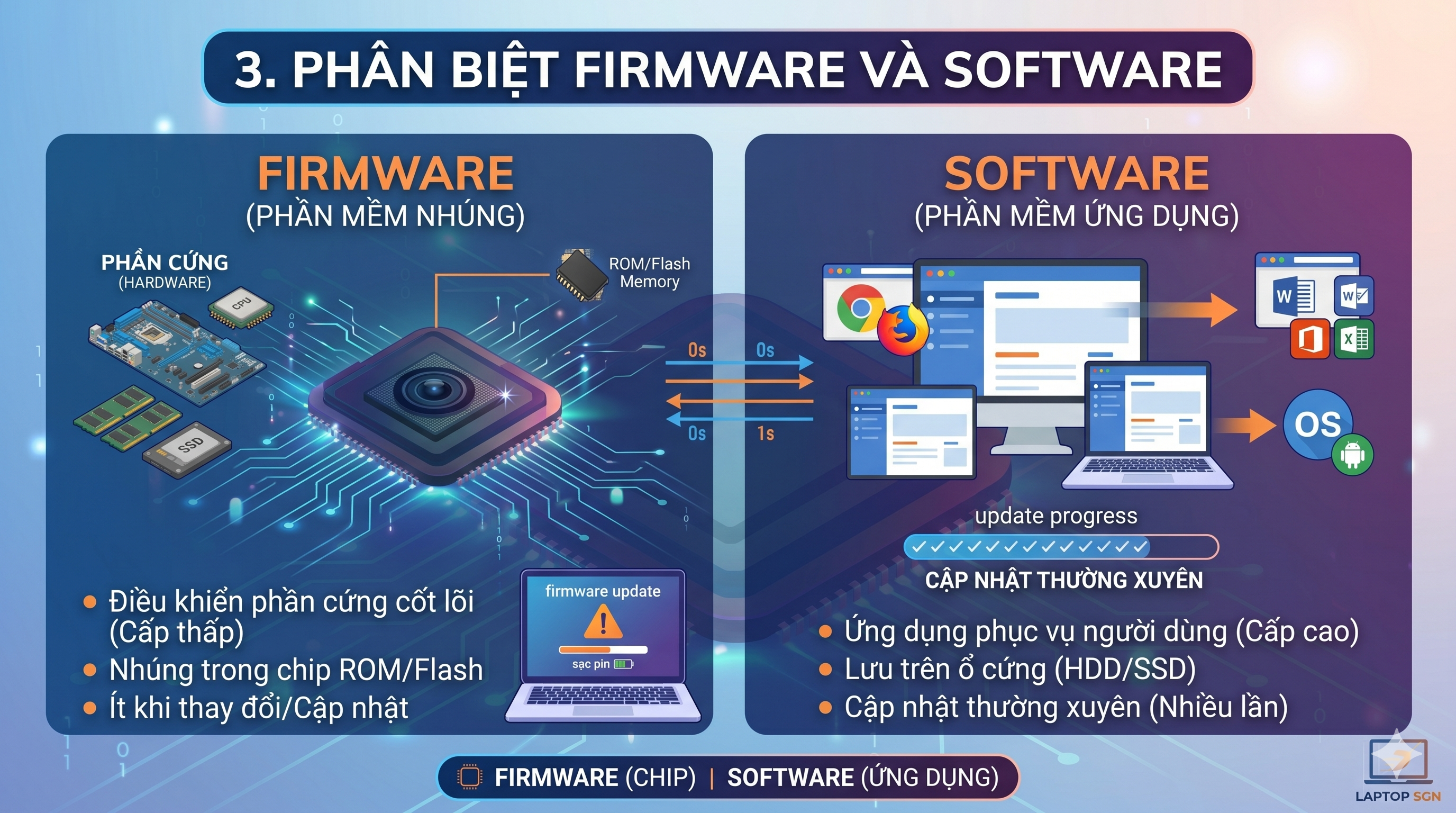 Trong bài viết này, Laptop SGN sẽ giúp bạn hiểu rõ firmware là gì, vai trò của firmware và cách cập nhật firmware an toàn.